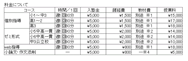 ※1 教材費はお作りするカリキュラムによって異なります。各教材の実費にて頂戴します。